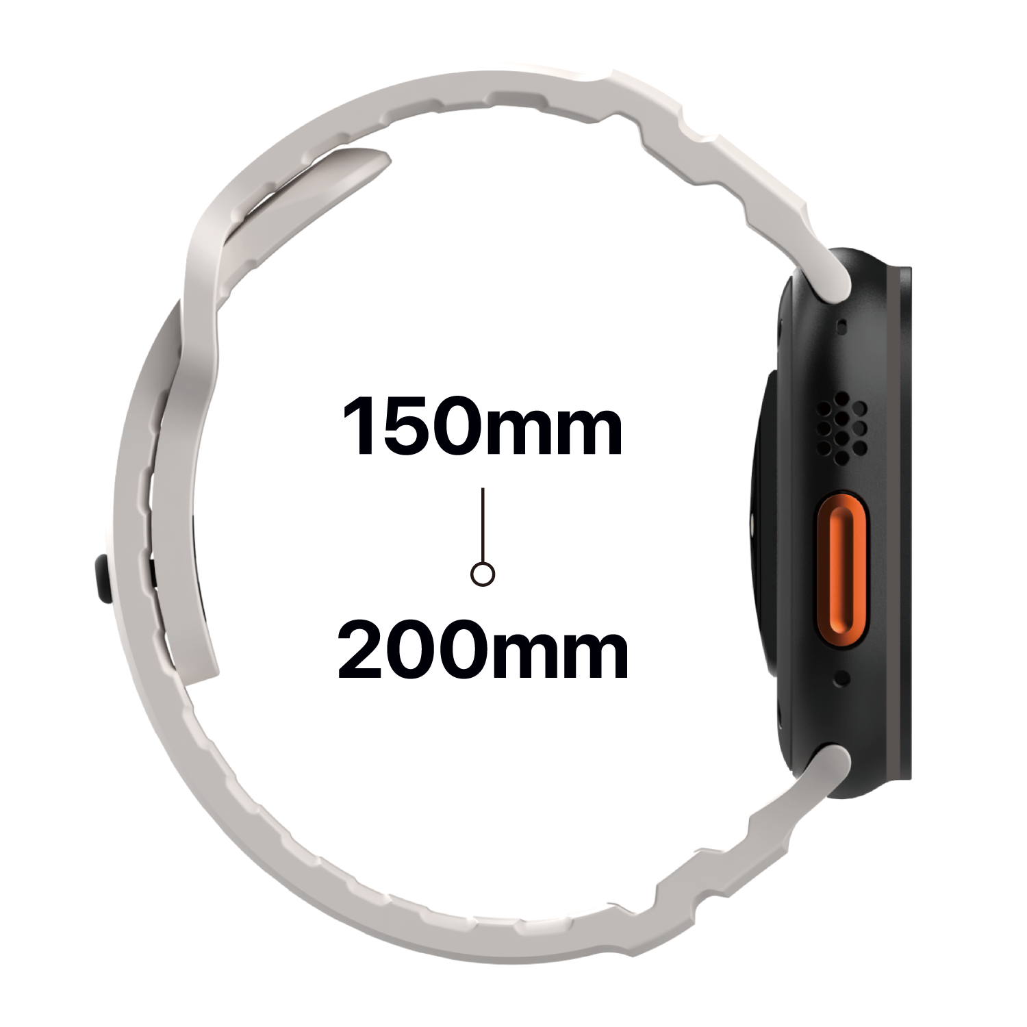 手圍範圍 150-200mm,相當於蘋果原廠S/M/L 三種尺寸標準,適用多數使用者的手腕。